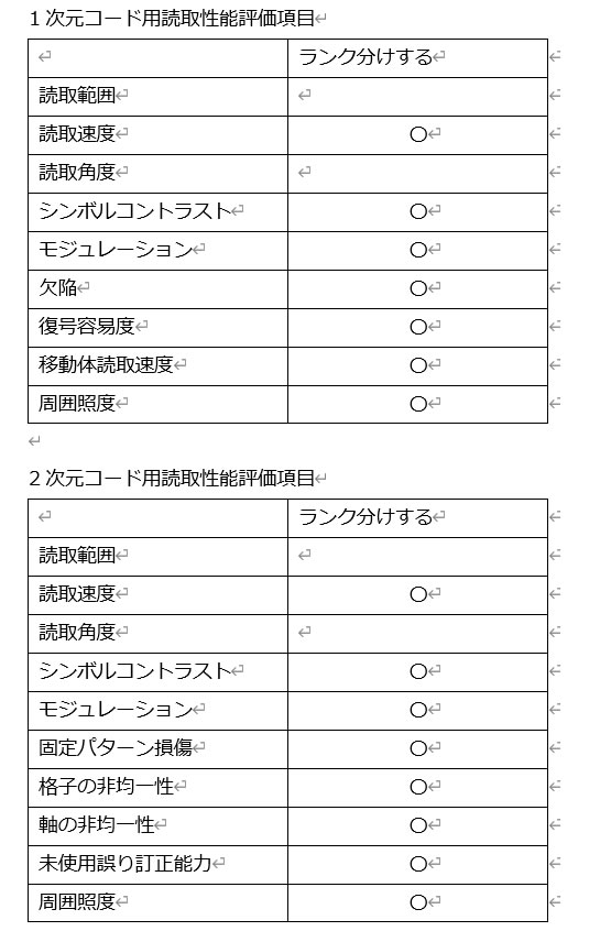 2次元コードのテスト項目はまた別となります。2次元コードには「スタック型」「マトリックス型」があって、どちらかによってテスト項目内容が異なります。ここでは、QRコードを含む「マトリックス型」のテスト項目を列挙しておきます。