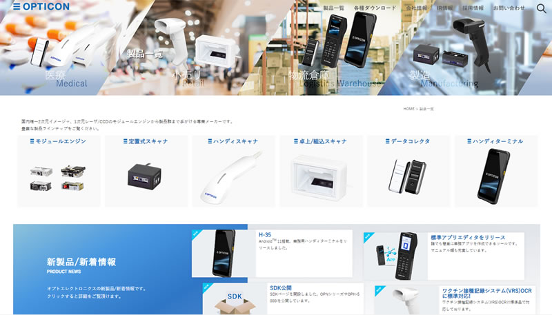 (株式会社オプトエレクトロニクス公式サイトの製品一覧ページ https://www.opto.co.jp/products.html より)