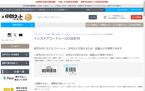 (印刷ネットドットコム > インストアコードシールCODE39)