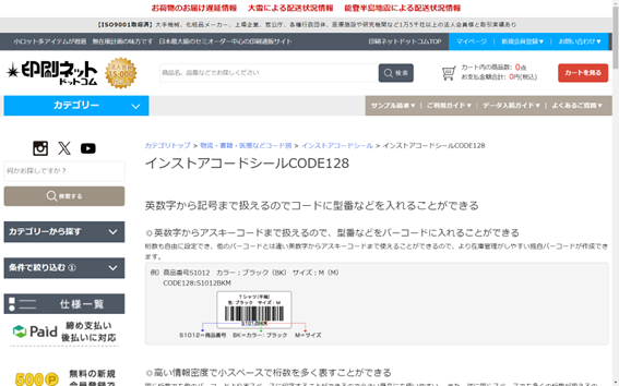 (印刷ネットドットコム > インストアコードシールCODE128)