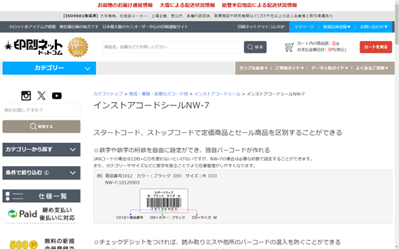 (印刷ネットドットコム > インストアコードシールNW-7)