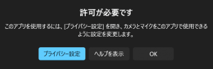 「プライバシー設定」画面を開いて、「カメラ」と「マイク」の許可を両方オンにしてください。