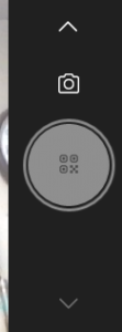 (3)「カメラ」アプリの右端に、動画カメラ / 静止画カメラ / QRコード読取を切り替えできるスライダーが表示されます。下向矢印を押して、QRコード読取を選択してください。