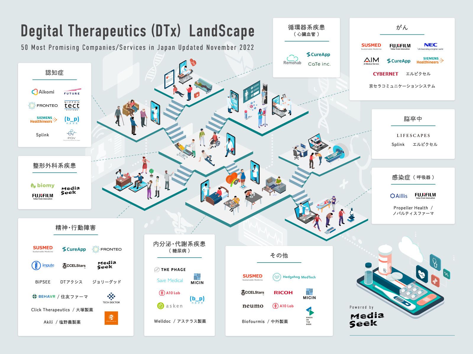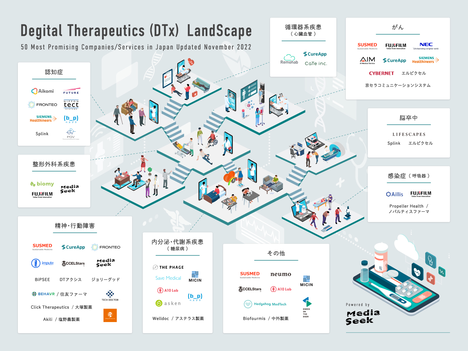 DTx関連事業を推進している株式会社メディアシークが、「DTx カオスマップ2022」を作成しました。