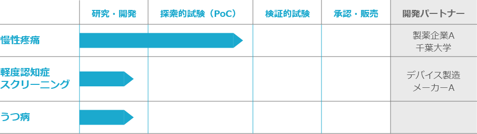 メディアシークは、脳神経科学とITを融合させるブレインテックに長く取り組んできました。その中で培ってきた、脳の状態を整えるニューロフィードバックという技術を活用し、事業パートナーと提携してDTxの領域で事業展開しています。特に薬での治療が難しいとされる慢性疼痛(腰痛)やうつ病、認知症といった中枢神経系の病気を中心に、治療用アプリの開発を行っています。