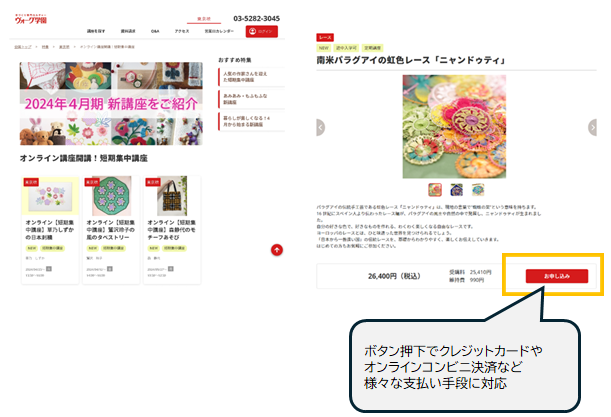基幹システムとの連携によりホームページで24時間の講座申込・オンライン決済が可能となりお客様にとっての利便性の向上、及びフロントスタッフの繁忙期の分散化を実現しております。